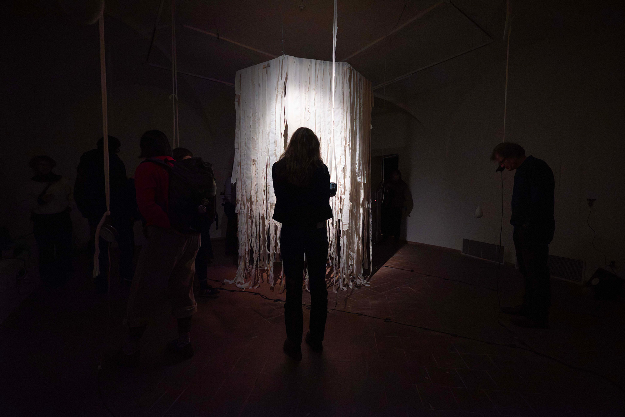 Cyklický rytmus přírody, proudící rytmus doby a proměnlivý rytmus každého jedince se vzájemně potkávají, rozcházejí, střetávají a souzní. Instalace otevírá bezpečný prostor pro zpomalení a proměnu perspektivy v čase, kdy se přirozené rytmy zdají být stále více skryté.