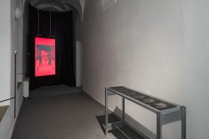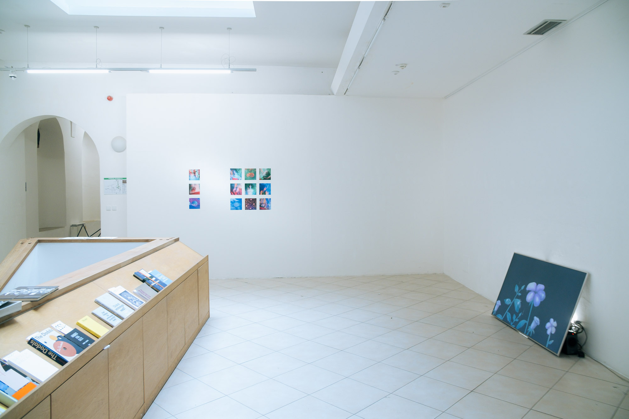 The Tralalily video was produced for this exhibition and acts as a mood setter, initiating the audience into their expectations. It follows the life of a virtual lily imprisoned in an indeterminate environment – a club aesthetic. Uncontrollably transforming every few seconds, the flower sings, expressing her alienation and frustration from the situation.