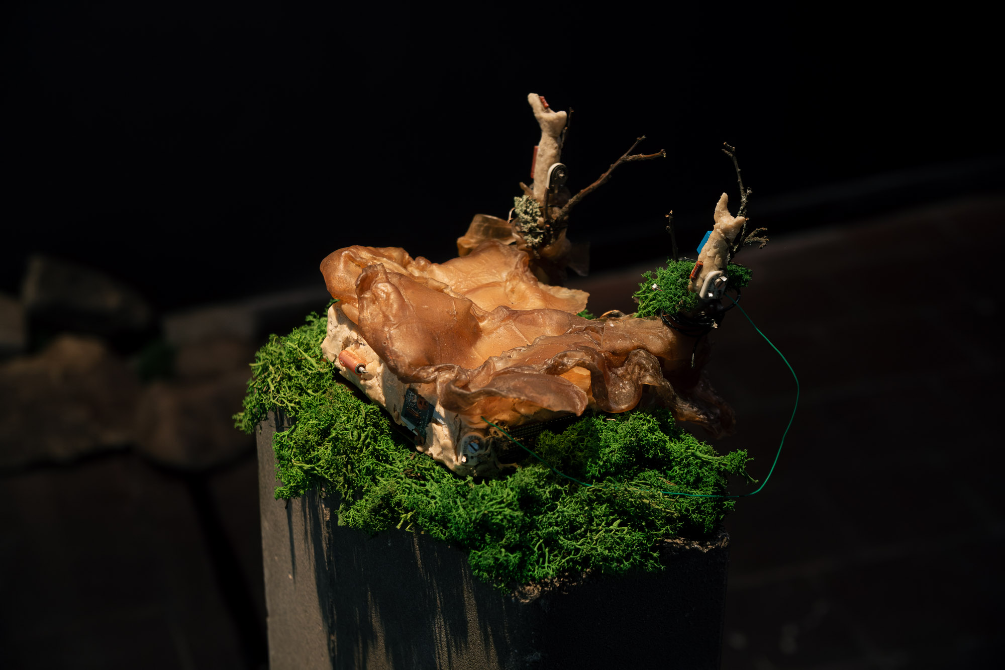 What if the only thing we can rely on today is uncertainty? This reliquary does not contain fragments of the material world but rather those things we remain unconscious of – feelings of doubt, being adrift, opening to endless possibilities, to plasticity. It is a vessel for a sense of “I don’t know” – but not as lack but rather as a positive quality. It captures the fragility of knowledge and the awareness of its mutability. It reminds us that understanding is not the ultimate goal, but rather a constant movement between a question and its answer. The emptiness of the reliquary invites us to walk through it; it tempts us to reevaluate stable paradigms and open up to the unfathomable. The reliquary is made in pseudo-renaissance style and is decorated with techno-fossil features, connecting historical references with modern technologies, and indicating the connection between past and future. The present constantly expands, endlessly shaping new ways of life.